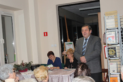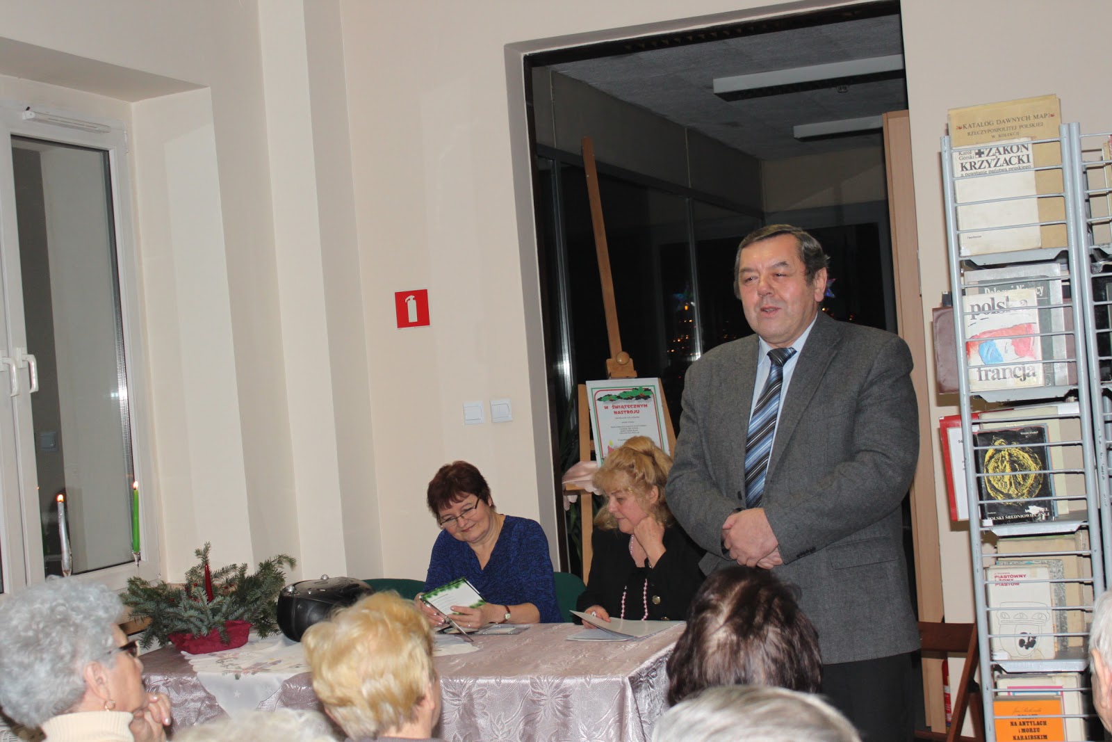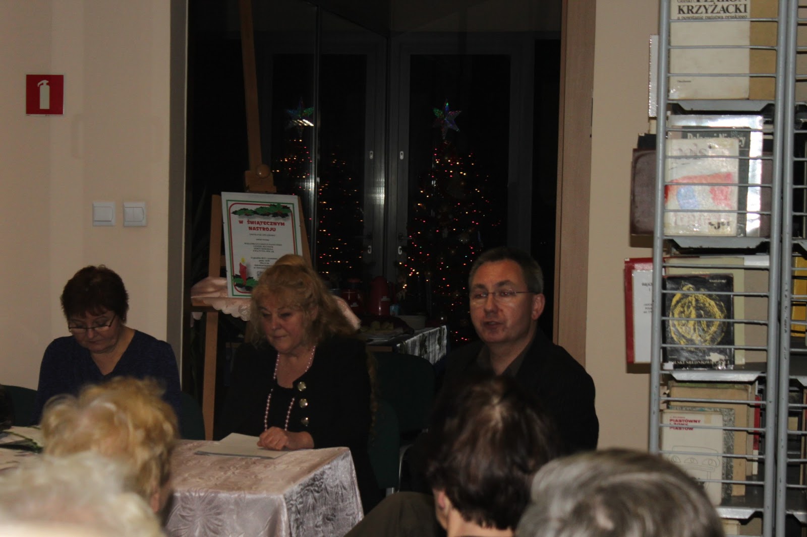 Spotkanie świąteczne z czytelnikami i zaproszonymi gośćmi, a wśród nich Małgorzata Krzyż-Pastuszko, Ewa Pytel-Polak, Leszek Jęczmyk, Jerzy Kiolbasa.