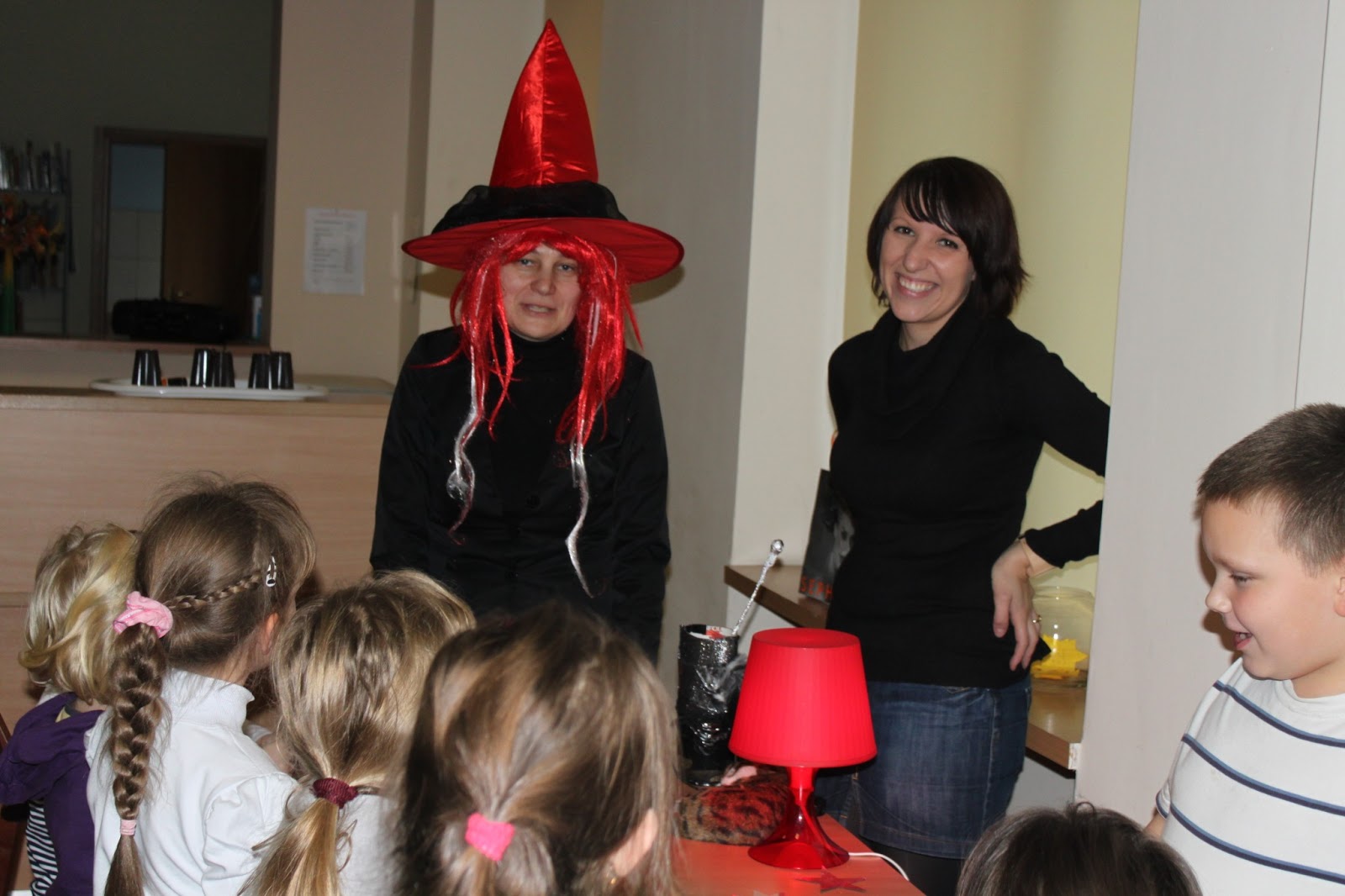 Wróżka Winifreda z Magiczną Księgą i kotkiem Wilusiem.