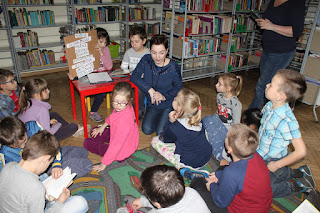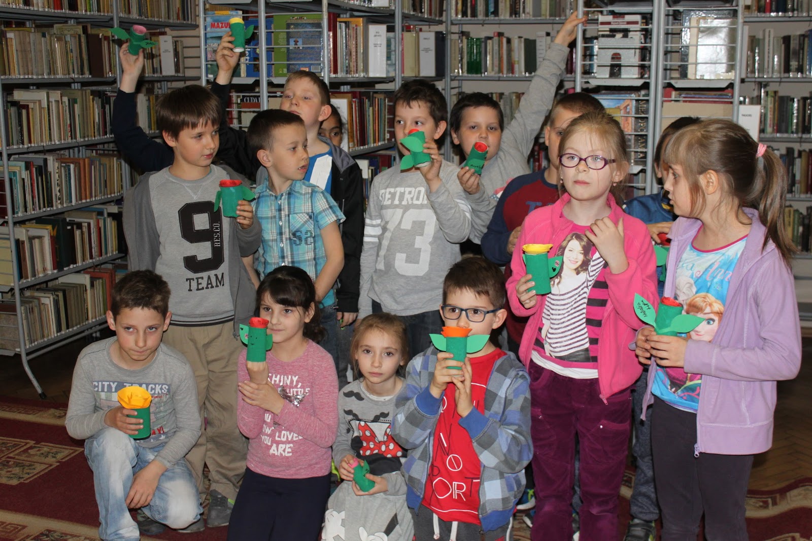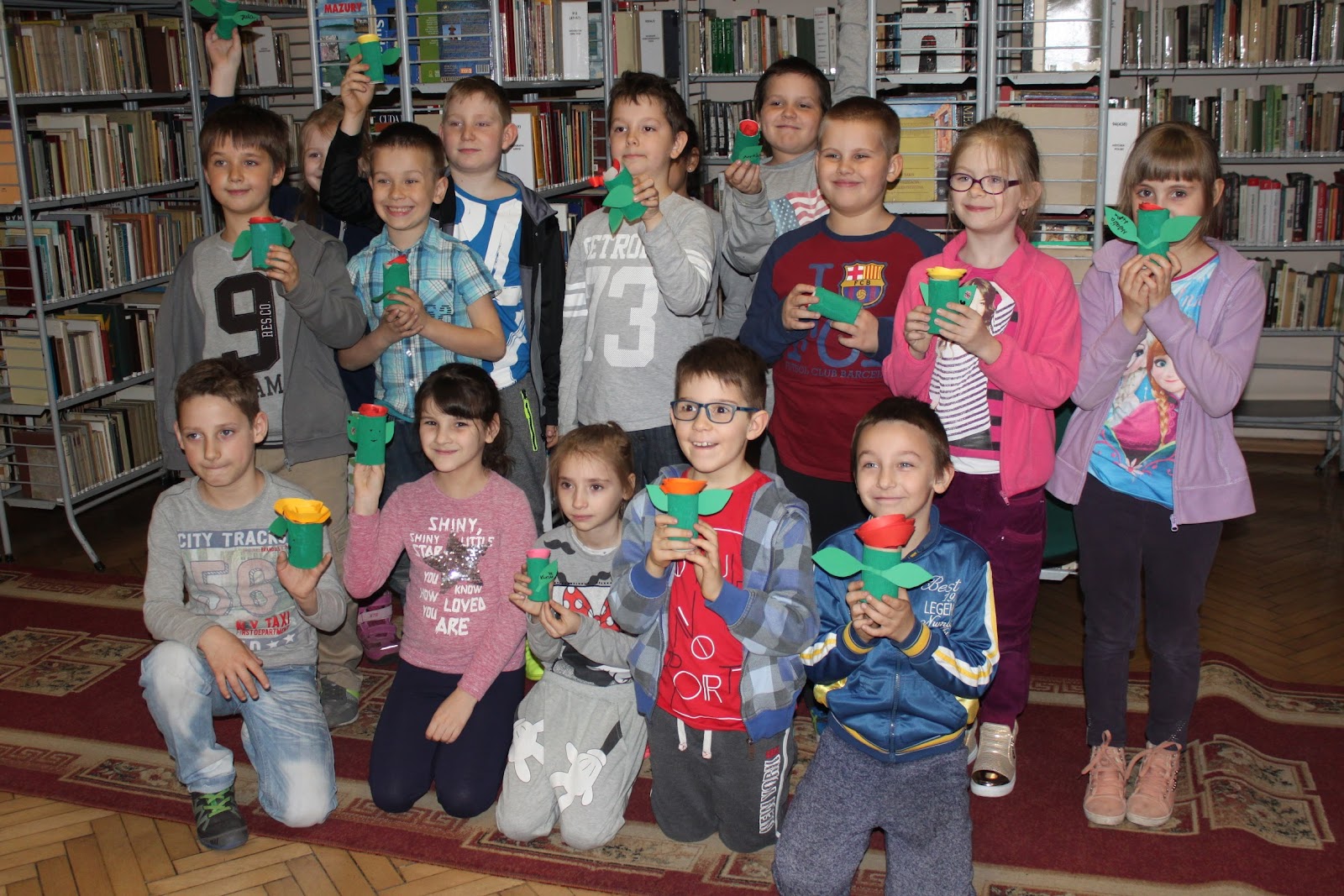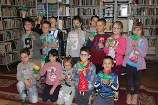 Podczas Światowego Dnia Książki zgodnie ze zwyczajem obdarowywano ludzi kwiatami, dlatego nasi goście z Przedszkola nr 60 wykonali piękne różyczki z papieru
