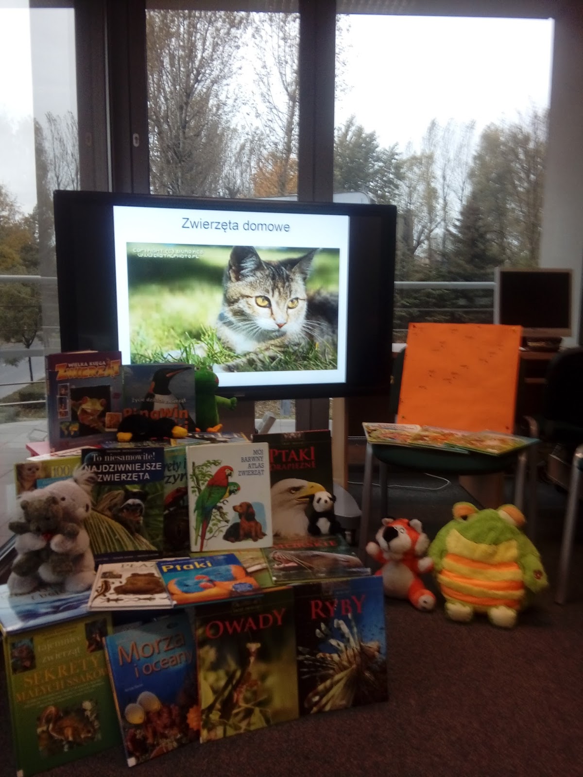 Dzieci z zaciekawieniem wysłuchały opowieści z książki pt." Zwierzęta moi przyjaciele" autora Vedere d"Auria. Następnie korzystając z tablicy multimedialnej uczniowie najpierw na podstawie obrazków a potem po wysłuchanych odgłosach odgadywali : co to za zwierzę?
