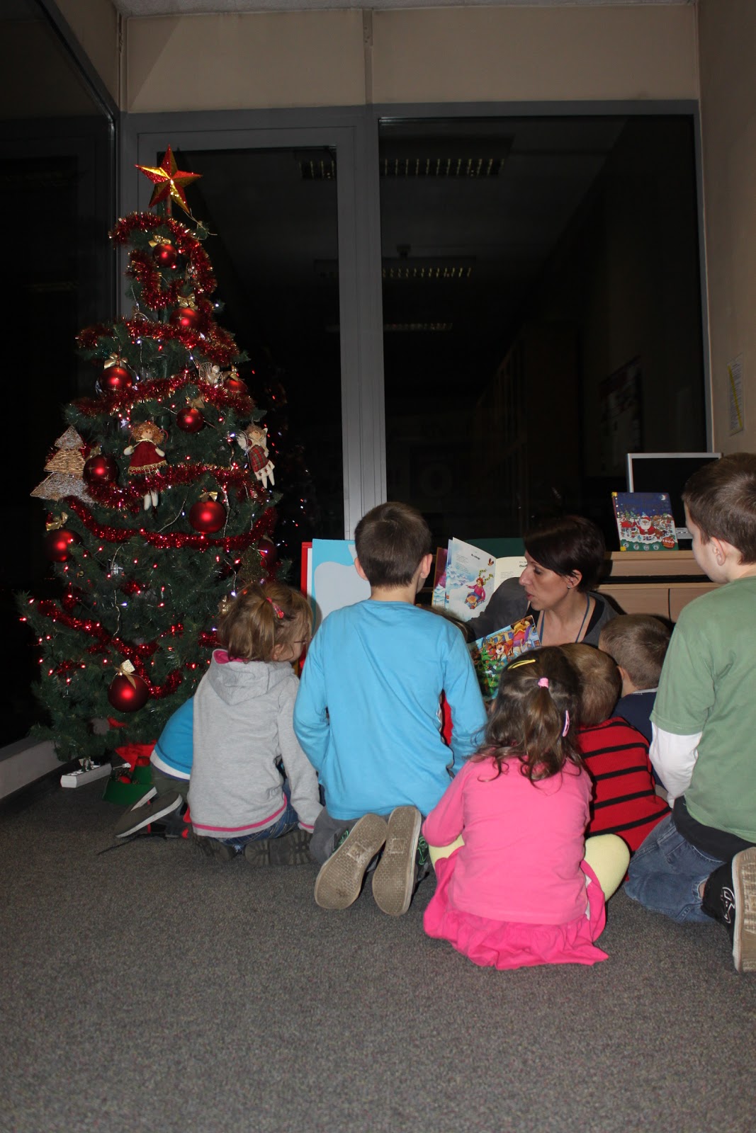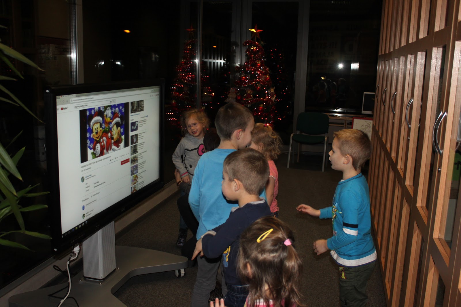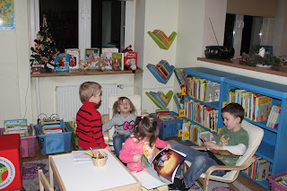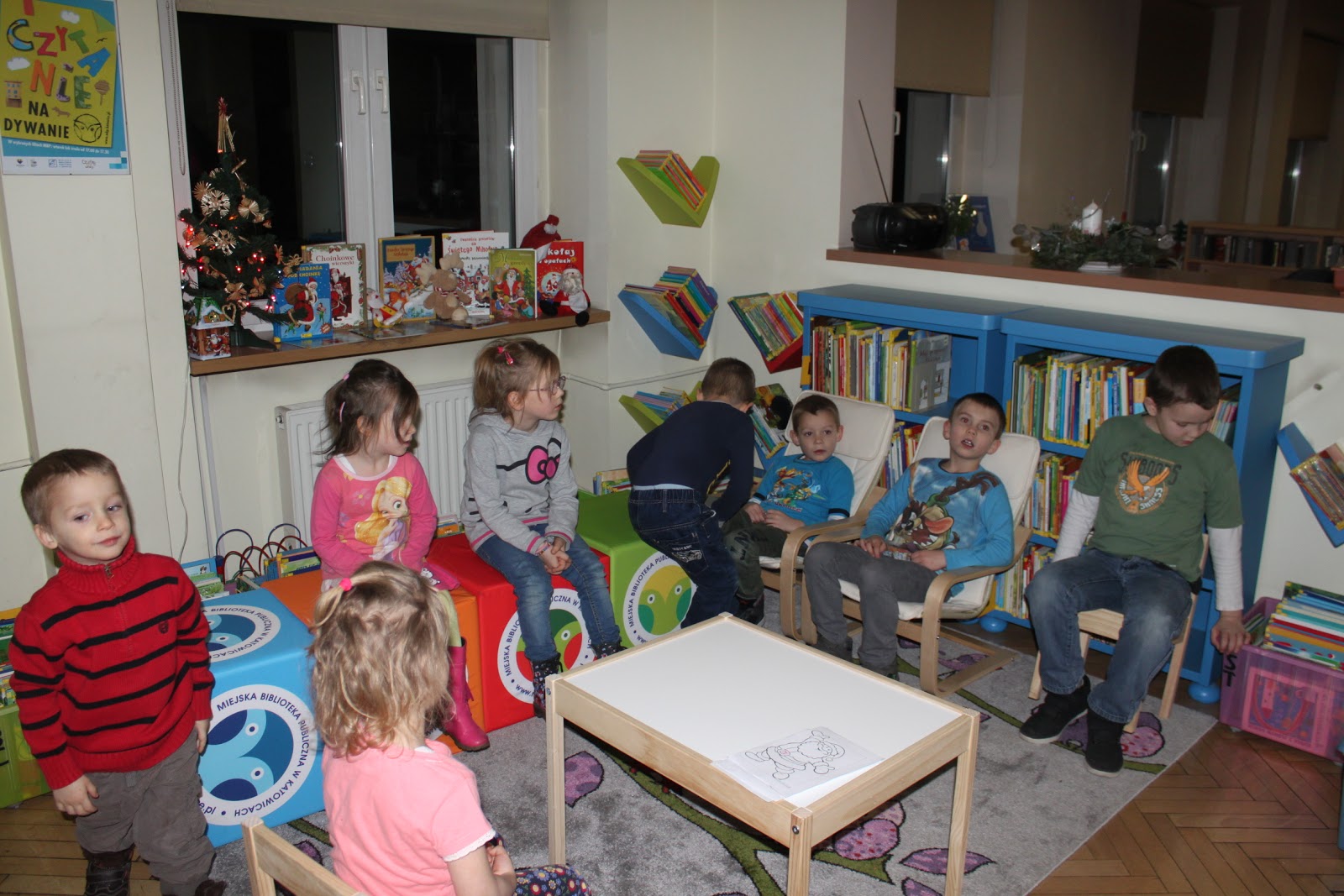 Następnie bawiliśmy się przy znanych zimowych piosenkach, a potem zmęczeni odpoczywaliśmy w kąciku dziecięcym przeglądając książeczki.