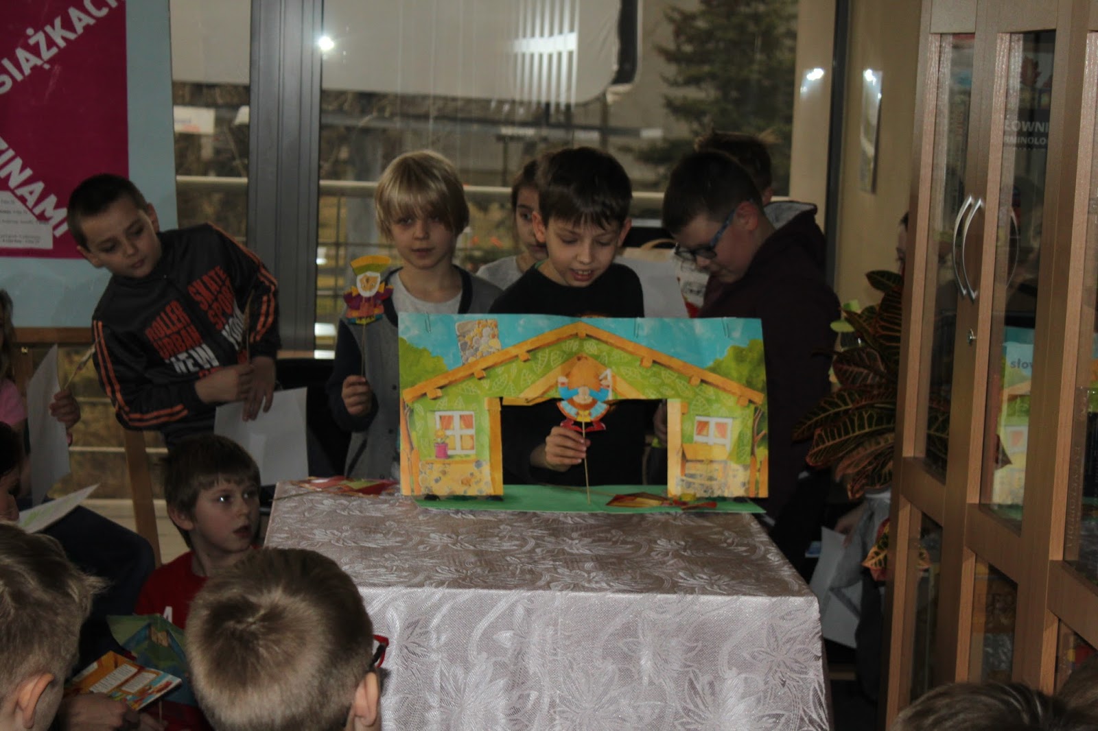 i zaprosiliśmy na zajęcia trzecioklasistów ze Szkoły Podstawowej nr 45 w Katowicach. Uczniowie wysłuchali bajki pt. "Teatr" M. Wojtyszko, a następnie poznali japoński teatrzyk obrazkowy Kamishibai. Rozmawialiśmy o różnych typach teatrów i rozmaitych formach teatralnych. Uczniowie doskonale wcielili się w różne role i wystawili teatrzyk pt."Królewna Śnieżka". Na zakończenie zajęć, ponieważ zabawa w teatr bardzo się dzieciom spodobała, postanowiliśmy odegrać pantomimę.