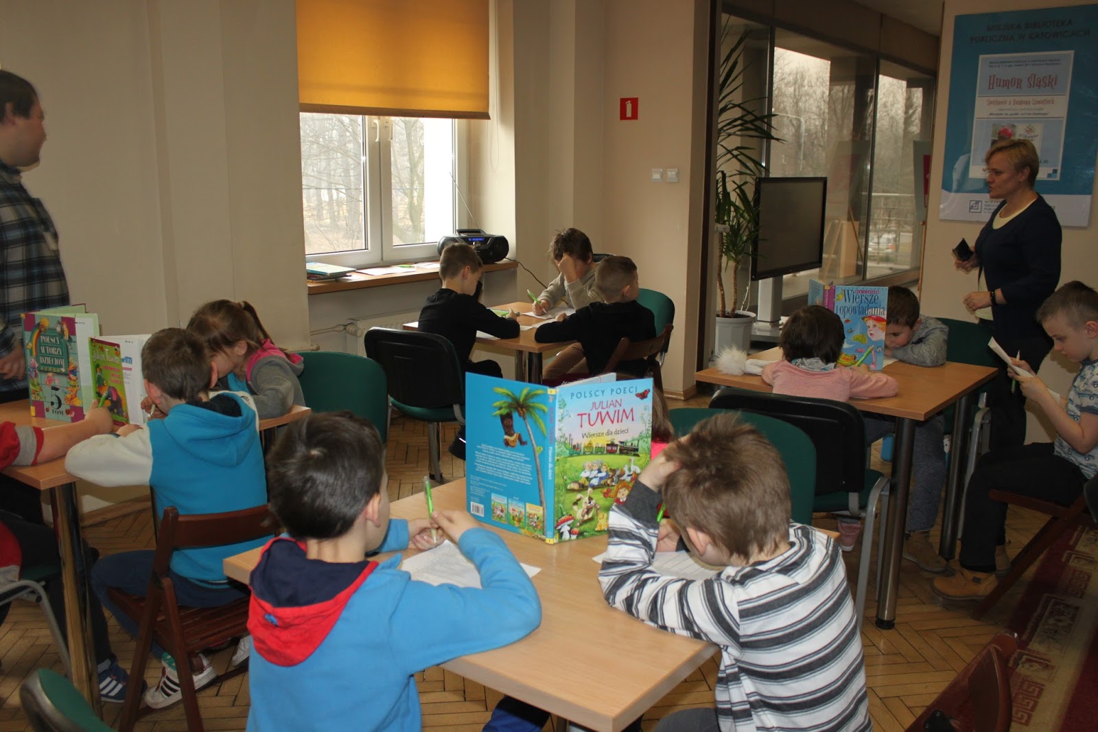 W ramach obchodzonego 21 marca Światowego Dnia Poezji gościliśmy w Bibliotece II klasę Szkoły Podstawowej nr 45 w Katowicach. Uczniowie wysłuchali kilku wierszy Juliana Tuwima w interpretacji znanego aktora Piotra Fronczewskiego, a następnie wzięli udział w konkursie. Zwycięzcy otrzymali nagrody książkowe. Uczniowie bardzo dobrze poradzili sobie z konkursowymi pytaniami. Walka była wyrównana, a o miejscach na podium zadecydowały minimalne różnice. Zwycięzcom jeszcze raz gratulujemy!
