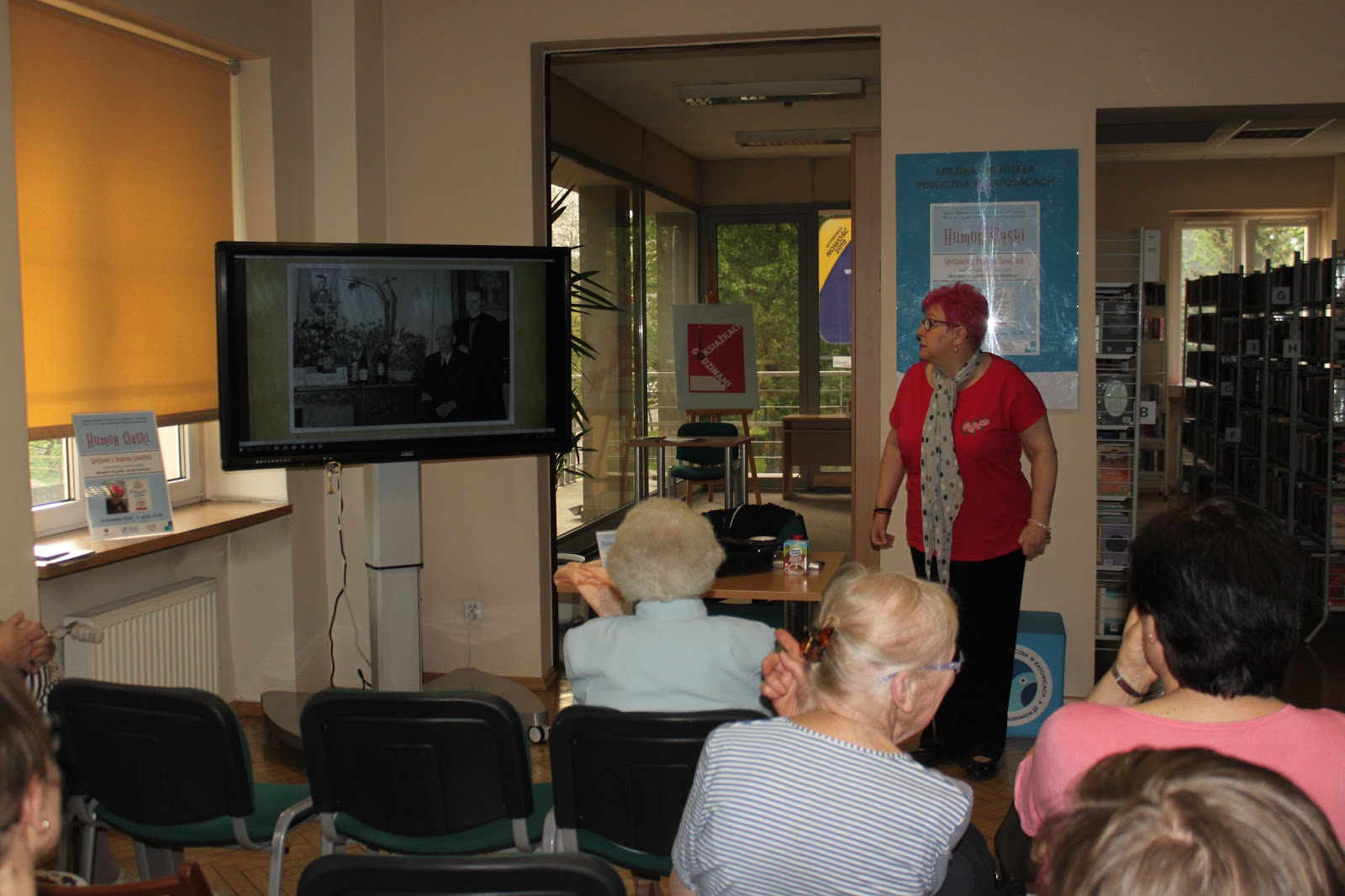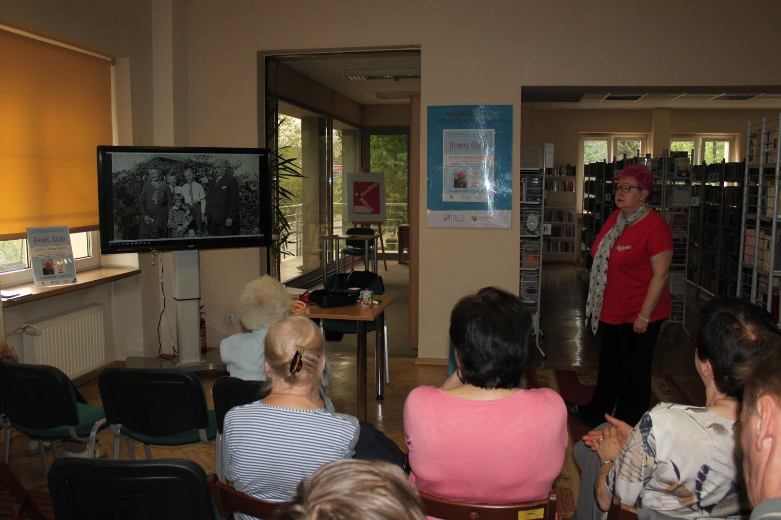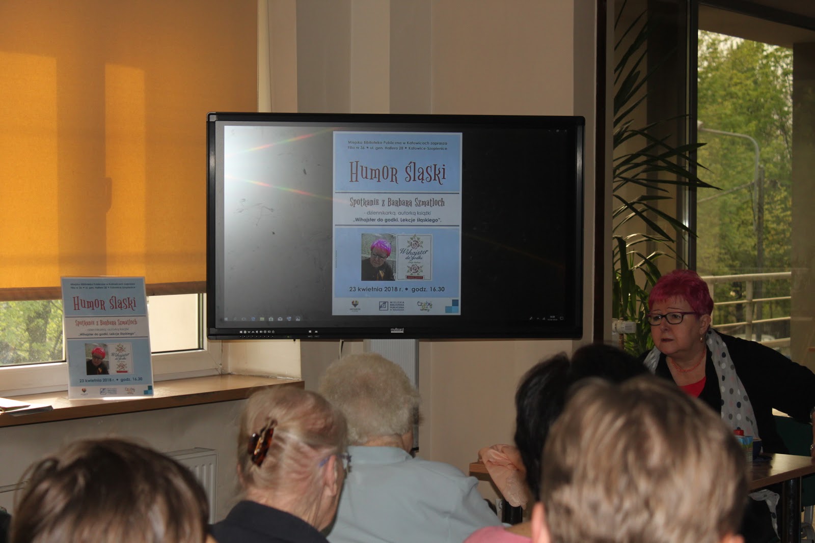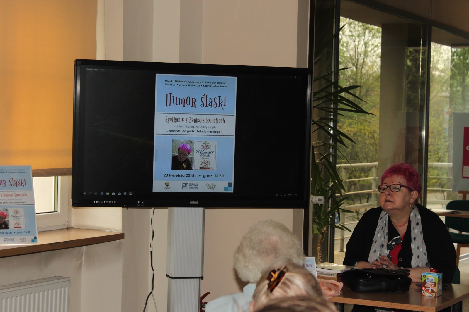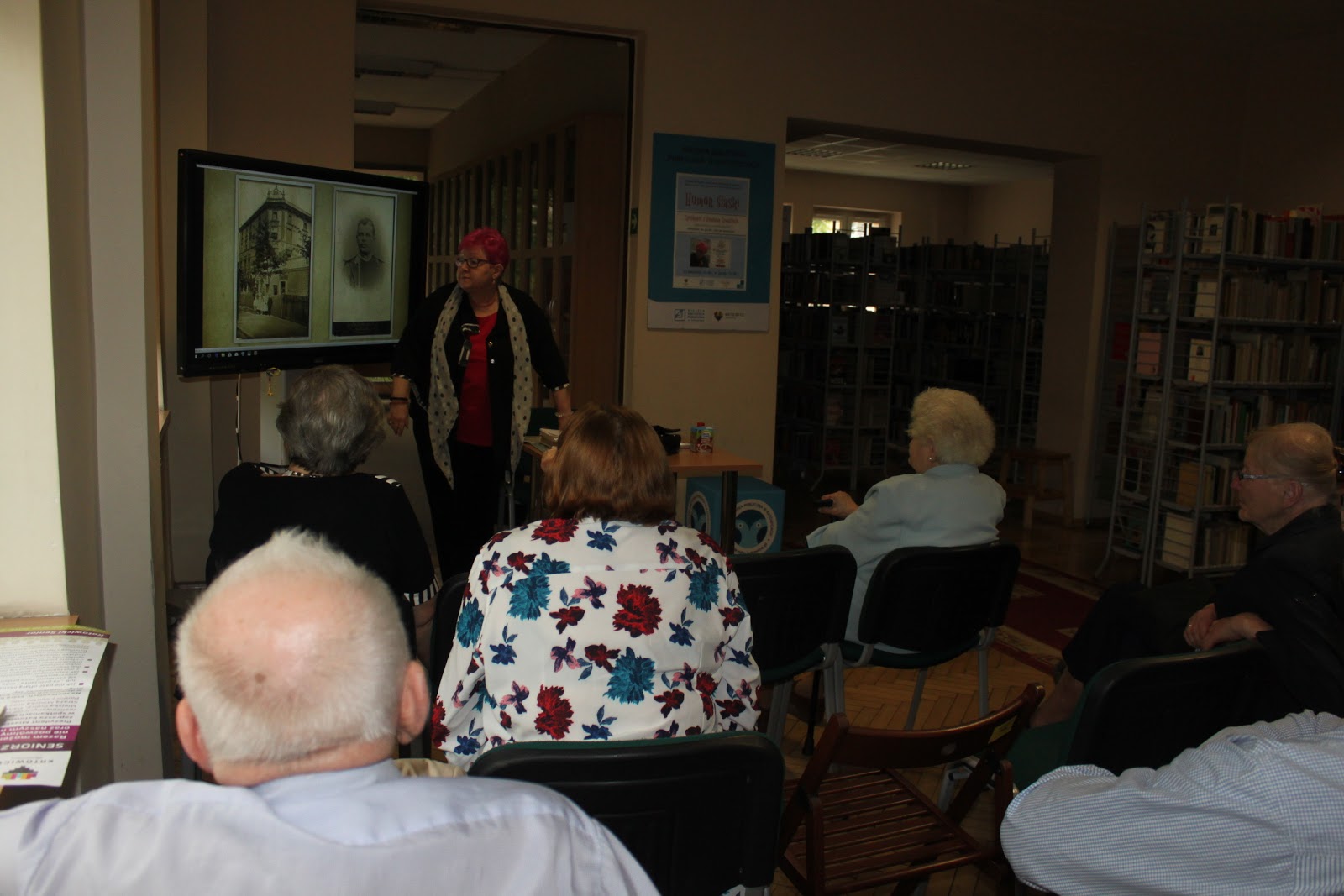 W poniedziałek naszym gościem była Barbara Szmatloch - dziennikarka Gazety Wyborczej, znawczyni i popularyzatorka gwary śląskiej oraz autorka książki "Wihajster do godki. Lekcje śląskiego". Zaproszona przez nas dziennikarka podzieliła się informacjami o historii Górnego Śląska, a także wieloma osobistymi wspomnieniami i ciekawostkami dotyczącymi regionu i gwary. Wykład Barbary Szmatloch oraz przyniesione przez nią zdjęcia wzbudziły zainteresowanie uczestników spotkania, którzy odpowiadali na pytania Pani Barbary i chętnie włączyli się do rozmowy o Śląsku.