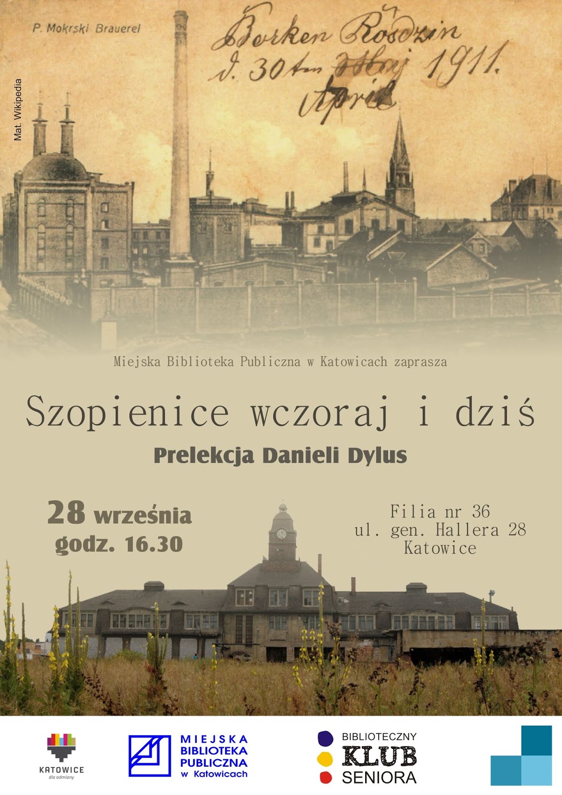 Serdecznie zapraszamy mieszkańców dzielnicy Szopienice-Burowiec oraz wszystkich zainteresowanych na prelekcję Danieli Dylus pt.: Szopienice wczoraj i dziś. Spotkanie odbędzie się 28 września o godzinie 16.30 w Filii 36 Miejskiej Biblioteki Publicznej w Katowicach.