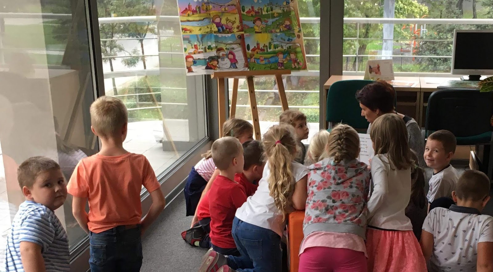 W ramach Ogólnopolskiego Dnia Głośnego Czytania odwiedziła nas wczoraj grupa przedszkolaków z Miejskiego Przedszkola nr 60 w Katowicach. Wspólnie z przedszkolakami przeczytaliśmy opowiadanie o jesiennych przygodach Kubusia Puchatka. Dzieci odgadywały zagadki związane z jesienią oraz świetnie poradziły sobie z kolejnym zadaniem, czyli dopasowaniem liści do odpowiednich drzew. Zwieńczeniem naszego spotkania były prace wykonane z jesiennych liści.