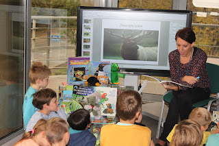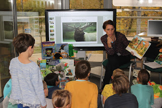 Dzieci z zaciekawieniem wysłuchały opowieści z książki pt." Zwierzęta moi przyjaciele" autora Vedere d"Auria. Następnie korzystając z tablicy multimedialnej uczniowie najpierw na podstawie obrazków a potem po wysłuchanych odgłosach odgadywali : co to za zwierzę?