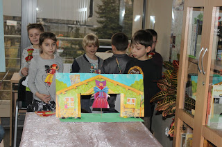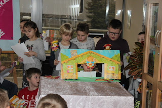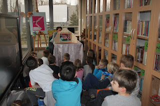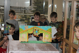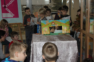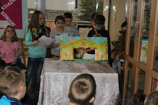 i zaprosiliśmy na zajęcia trzecioklasistów ze Szkoły Podstawowej nr 45 w Katowicach. Uczniowie wysłuchali bajki pt. "Teatr" M. Wojtyszko, a następnie poznali japoński teatrzyk obrazkowy Kamishibai. Rozmawialiśmy o różnych typach teatrów i rozmaitych formach teatralnych. Uczniowie doskonale wcielili się w różne role i wystawili teatrzyk pt."Królewna Śnieżka". Na zakończenie zajęć, ponieważ zabawa w teatr bardzo się dzieciom spodobała, postanowiliśmy odegrać pantomimę.