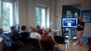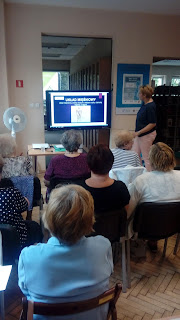 z cyklu Rady i porady dla seniorów. Tym razem zaprosiliśmy na spotkanie fizjoterapeutkę Agatę Bednarek, która przybliżyła nam tematykę zdrowego kręgosłupa. Dowiedzieliśmy się jak zadbać o nasz kręgosłup, by jak najdłużej nam służył. Każdy z obecnych na spotkaniu seniorów otrzymał zestaw ćwiczeń, które mają na celu zadbać o prawidłową postawę naszego ciała. Pod okiem doświadczonego fizjoterapeuty wykonaliśmy kilka podstawowych ćwiczeń, bowiem gimnastyka jest idealnym rozwiązaniem, aby uniknąć bólu i cieszyć się doskonałą kondycją. Teraz już wiemy jak prawidłowo leżeć, siedzieć, ponosić ciężary, schylać się a co najważniejsze czytać książki. Dziękujemy za mnóstwo cennych informacji.